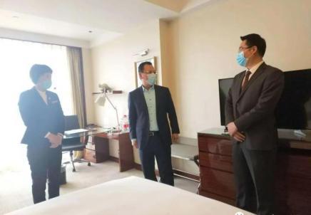 經(jīng)過體溫檢測(cè)等程序后,劉守亮來(lái)到酒店頤庭閣客房、上善坊自助餐廳實(shí)地察看疫情防控工作。在聽取相關(guān)匯報(bào)后,劉守亮對(duì)酒店客房?jī)?nèi)增設(shè)“紫外線消毒車”“免洗酒精噴霧”,上善坊嚴(yán)格遵守堂食規(guī)定實(shí)行“單人單桌”“分餐位上”“公勺公筷制”等有效防疫舉措給予肯定。