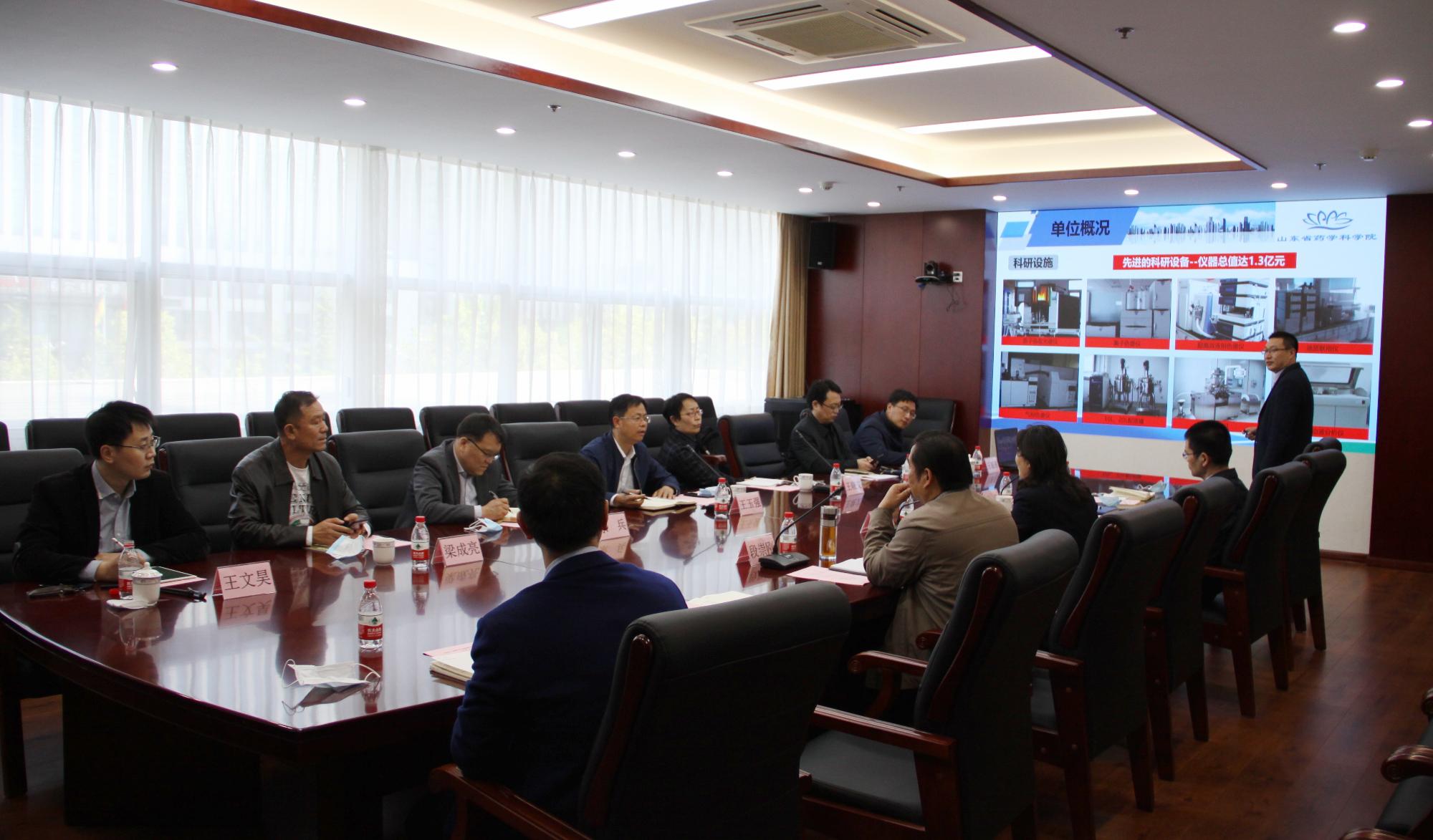 王玉強(qiáng)一行實(shí)地參觀了省藥科院制劑中試車間、新藥安全性評(píng)價(jià)中心等研究科室,對(duì)省藥科院完善的科研條件和先進(jìn)的硬件設(shè)施建設(shè)給予高度評(píng)價(jià)。隨后的座談會(huì)上,項(xiàng)目管理部部長(zhǎng)湯漩圍繞專業(yè)特色、科研團(tuán)隊(duì)、平臺(tái)建設(shè)等方面介紹了省藥科院基本情況,并就近期開展的重點(diǎn)科研工作進(jìn)行了匯報(bào)。王玉強(qiáng)對(duì)省藥科院在學(xué)科建設(shè)、人才培養(yǎng)、成果轉(zhuǎn)化等方面工作上取得的成績(jī)給予充分肯定。他說(shuō),此次調(diào)研的目的就是來(lái)解決省藥科院在藥品、醫(yī)療器械研發(fā)及產(chǎn)業(yè)化等方面存在的問題和實(shí)際需求,市市場(chǎng)監(jiān)管局將發(fā)揮專業(yè)和渠道優(yōu)勢(shì),牽頭梳理困難和需求,為省藥科院的發(fā)展做好服務(wù)。