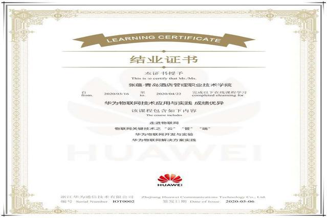 此次實(shí)訓(xùn),華為公司為學(xué)院物聯(lián)網(wǎng)學(xué)子開設(shè)網(wǎng)絡(luò)平臺(tái)專區(qū),課程基于華為“Ocean Connect” 平臺(tái)深入剖析了物聯(lián)網(wǎng)技術(shù)的最新應(yīng)用場(chǎng)景,給學(xué)生提供了在線實(shí)訓(xùn)的良機(jī)。學(xué)院組織了2018級(jí)物聯(lián)網(wǎng)應(yīng)用技術(shù)專業(yè)學(xué)生及2019級(jí)計(jì)算機(jī)應(yīng)用專業(yè)群的優(yōu)秀學(xué)生共計(jì)100人參加。經(jīng)過考核,97人通過所有測(cè)試,拿到了華為“物聯(lián)網(wǎng)技術(shù)應(yīng)用與實(shí)踐”課程認(rèn)證證書,其中優(yōu)秀率達(dá)45%。