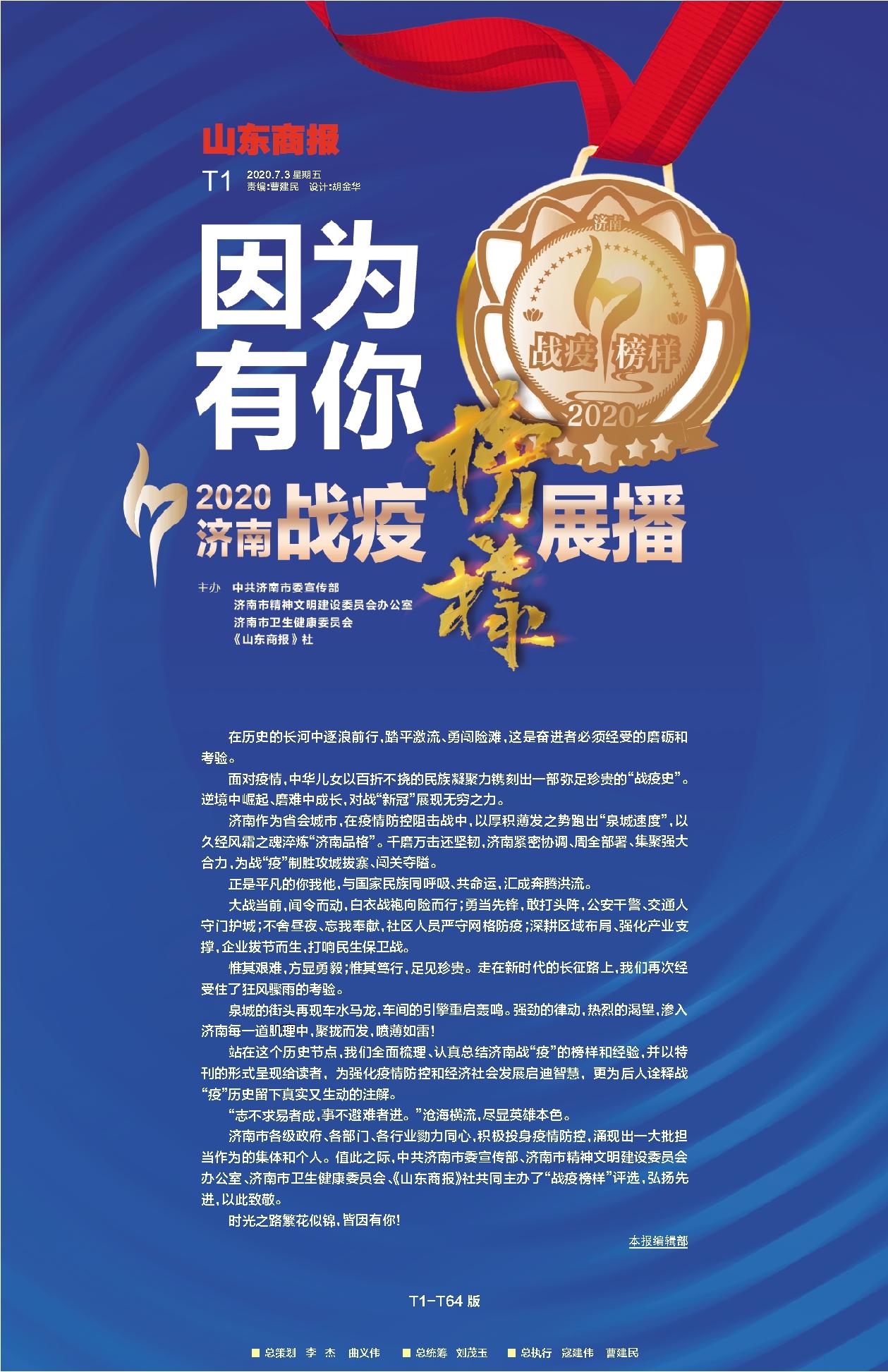 沒有從天而降的英雄,只有挺身而出的凡人。自新冠肺炎疫情發生以來,全國上下積極應對,打響了一場沒有硝煙的阻擊戰。為宣傳弘揚先進典型,致敬“戰疫”英雄,從4月起,由魯商傳媒《山東商報》社策劃執行,濟南市委宣傳部、濟南市文明辦、濟南市衛健委、《山東商報》社聯合推出戰疫榜樣評選活動。