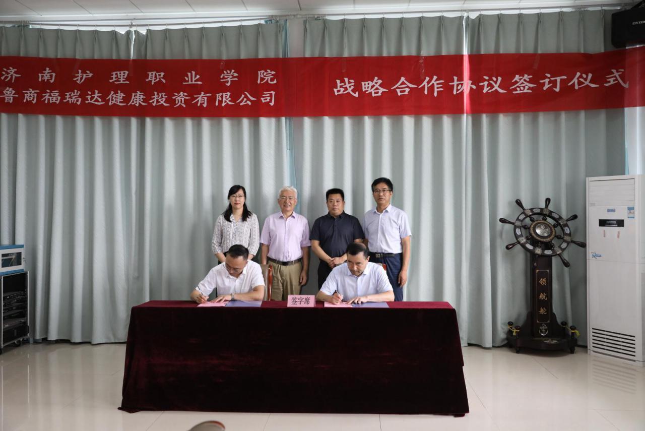 7月28日,濟南護理職業學院與魯商福瑞達健康投資有限公司簽署戰略合作協議。濟南護理職業學院黨委書記張振民,黨委副書記、院長宋林杰,魯商福瑞達健康投資有限公司總經理張恩軍,常務副總經理張建軍、副總經理朱巧玲出席簽約儀式。儀式由濟南護理職業學院教務處處長高強主持。