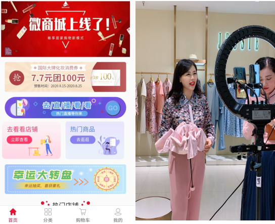 該平臺幾乎覆蓋了門店線下百貨全品類,不僅實現了線上展示、銷售品牌商品,還兼具直播帶貨、拼團秒殺、粉絲裂變、傭金分成等營銷功能。微商城上線以來的第一個互動活動“大轉盤抽獎”游戲,總瀏覽量就近2 萬次。同時,門店擇優孵化了很多員工作為主播帶貨,吸引眾多粉絲在線購物,取得了不俗的銷售業績。