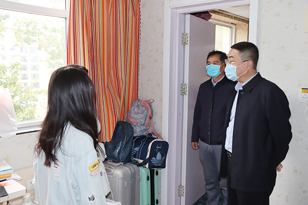 當天下午,院長韓冰、副院長杜敏看望學院接回的實習學生及帶隊老師。韓冰親切詢問學生們的學習生活情況,叮囑同學們按照疫情防控要求,積極配合健康監測;要求帶隊老師要全面做好學生服務工作。韓冰還向工作人員詳細了解同學們住宿和用餐的供應情況,并要求他們務必做好同學們在健康監測期間的各項保障工作。