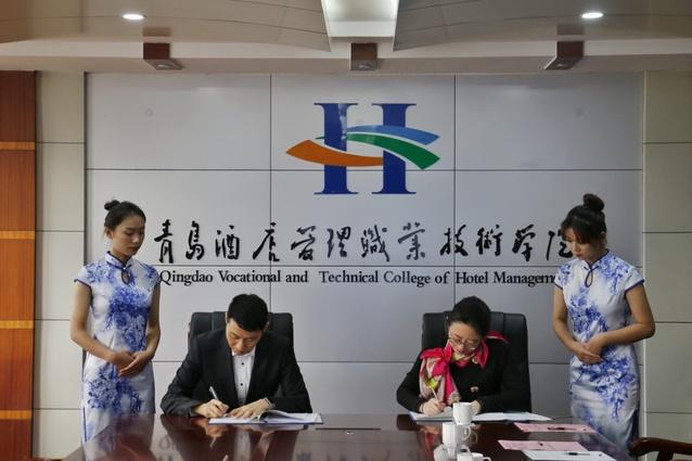 11月5日,青島酒店學院與萬豪國際集團簽署校企合作戰略協議。萬豪國際集團工程總監袁猛、學院黨委副書記王鑫代表雙方簽署戰略合作協議書。