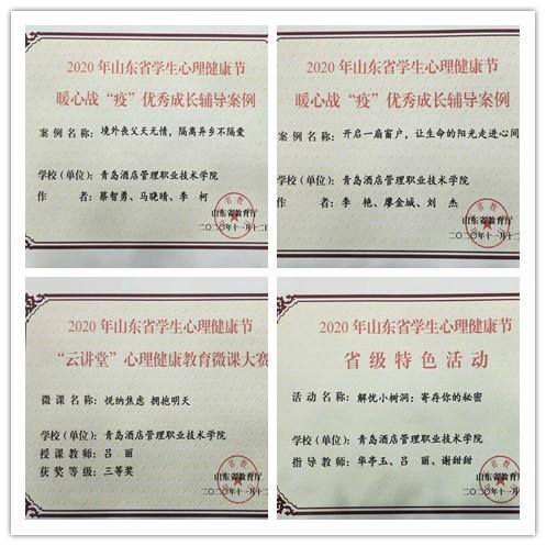 11月16日,山東省大學生心理健康教育專委會2020年年會對省大學生心理健康節(jié)獲獎項目進行了表彰,青島酒店學院選送的4項作品喜獲佳績。