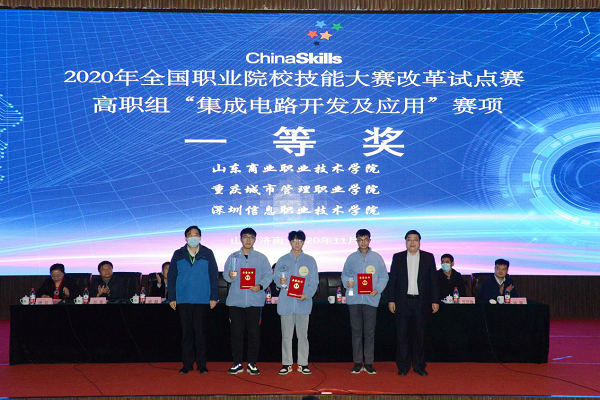 11月28日至30日,2020年全國(guó)職業(yè)院校技能大賽改革試點(diǎn)賽“集成電路開(kāi)發(fā)及應(yīng)用”賽項(xiàng)(高職組)比賽在山東商院舉辦,來(lái)自全國(guó)28個(gè)職業(yè)院校的84名選手參加了本次比賽。經(jīng)過(guò)兩天的角逐,山東商院、重慶城市管理職業(yè)學(xué)院、深圳信息職業(yè)技術(shù)學(xué)院獲得一等獎(jiǎng)。