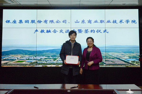 12月3日下午,山東商院與銀座集團產教融合簽約會舉行,山東商院副院長徐紅與銀座集團總經理康翔代表雙方簽署產教融合戰略合作框架協議。