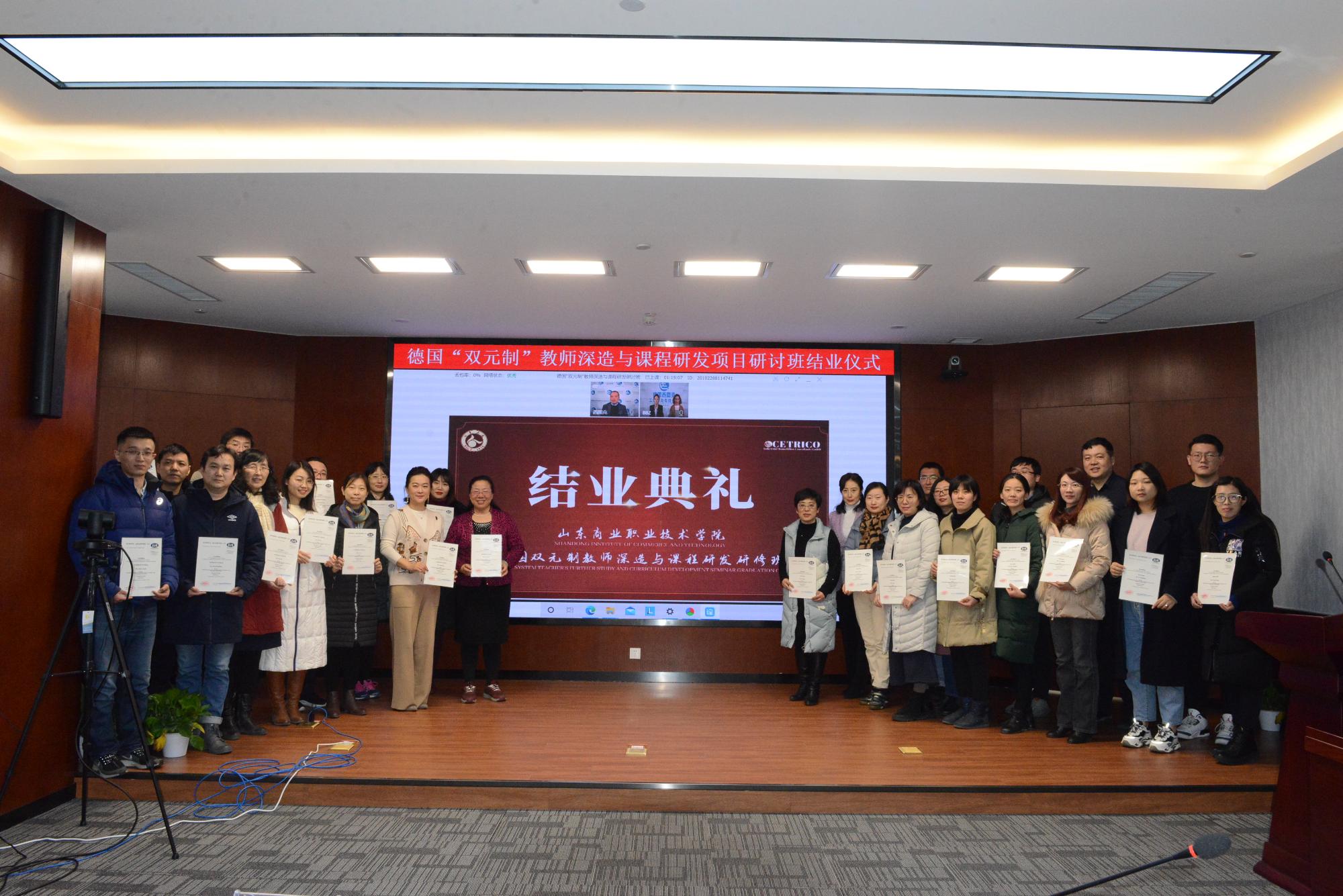 12月23日,山東商院舉行德國“雙元制”教師深造與課程研發項目研討班的結業儀式。德國西圖克公司駐中國代表顧廣宇為學校研討班教師代表頒發結業證書。