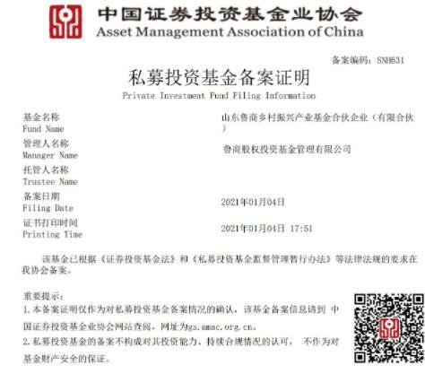 近日,由魯商集團牽頭發起設立的山東魯商鄉村振興產業基金,在中國證券投資基金業協會完成備案。