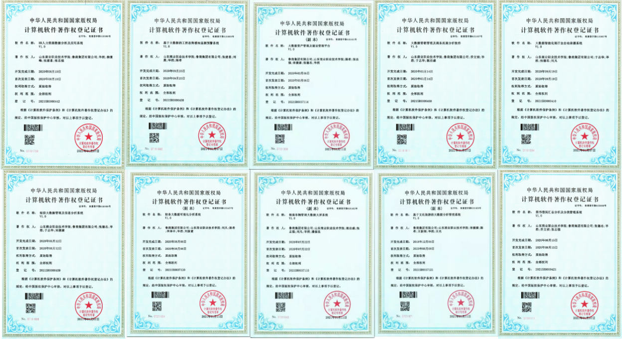 其中,魯商云與山東商院在大數據方面進行相關合作,全年共取得十項計算機軟件著作權,涵蓋人力資源分析、財務分析、車輛分析、文化旅游分析、數據資產管理等。