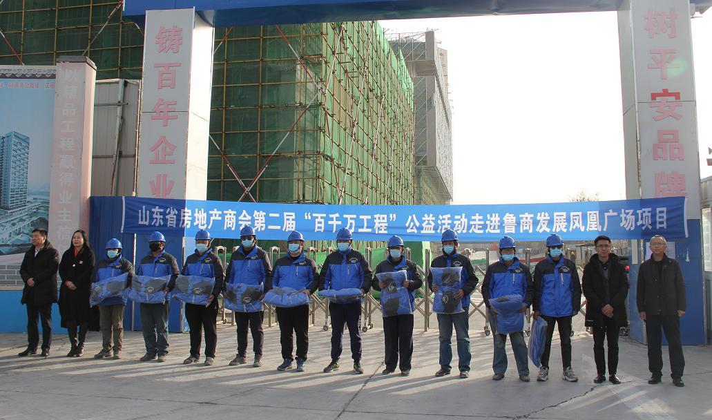 活動現場,承辦方魯商發展聯合山東省房地產商會和大眾網為項目建設者送上了御寒棉衣,希望在嚴寒天氣中堅守一線的城市建設者們溫暖過冬。