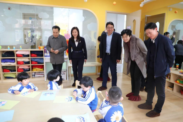 2月5日,山東省衛(wèi)健委人口家庭處一級(jí)調(diào)研員崔學(xué)狀、副處長(zhǎng)許春華,濟(jì)南市衛(wèi)健委人口家庭處處長(zhǎng)郭亞囡一行,到銀座幼教調(diào)研。銀座幼教黨總支書(shū)記、董事長(zhǎng)袁霞,銀座幼教黨總支副書(shū)記、總園長(zhǎng)孟凡庸陪同。