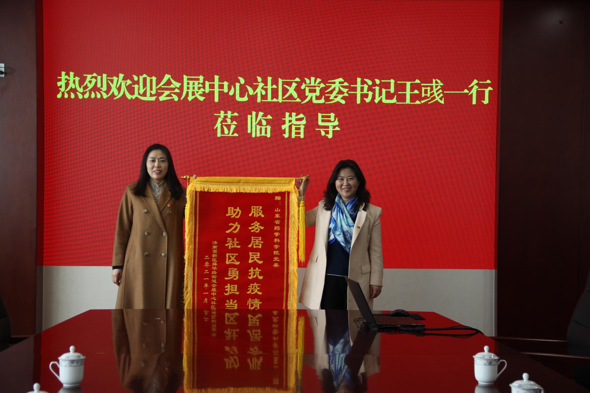 近期,高新區舜華路街道辦事處會展中心社區黨委書記王彧代表“雙報到”共建社區為省藥科院贈送“服務居民抗疫情 助力社區勇擔當”錦旗,感謝省藥科院通過開展“雙報到”活動在2020年疫情防控中給予社區的大力支持和作出的貢獻。