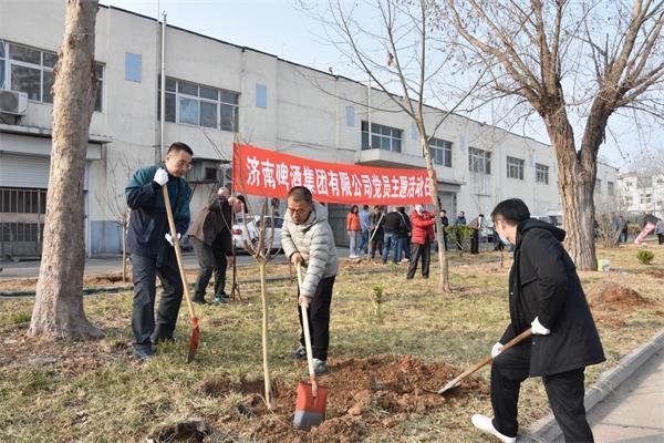 3月12日,在全國第43個植樹節到來之際,濟啤集團黨委組織全體黨員開展義務植樹活動,以實際行動踐行“綠水青山就是金山銀山”的綠色發展理念。公司黨委書記、董事長周雷帶頭參加活動。
