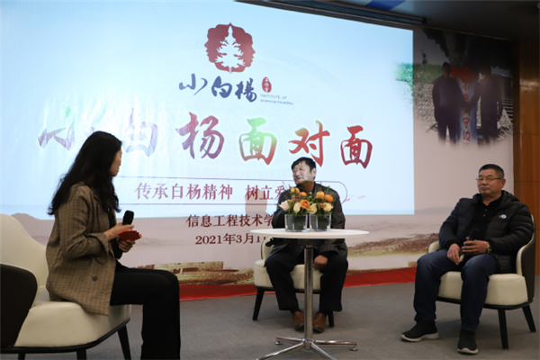 程富勝在學(xué)術(shù)報(bào)告廳為信息工程技術(shù)學(xué)院全體師生講述了“小白楊”背后的故事。他表示:“軍旅曲目《小白楊》家喻戶(hù)曉、經(jīng)典傳唱,‘小白楊精神’不僅是軍人戍邊、保衛(wèi)國(guó)家的精神所系,更是激勵(lì)一代代青年人扎根祖國(guó)最需要的地方、傲立挺拔、報(bào)效祖國(guó)的精神動(dòng)力。”