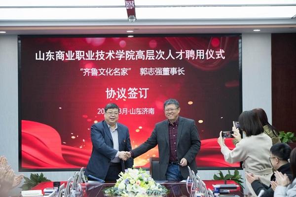 現(xiàn)場(chǎng)簽約后,徐紅為“齊魯文化名家”郭志強(qiáng)頒發(fā)國(guó)家級(jí)高水平專業(yè)群“市場(chǎng)營(yíng)銷專業(yè)群”建設(shè)顧問聘書,張宗國(guó)為山東商院客座教授頒發(fā)聘書。