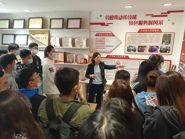 在銀座商城“于真真創(chuàng)新工作室”,速打領(lǐng)帶世界吉尼斯紀(jì)錄保持者、全國勞模、山東省富民興魯勞動獎?wù)芦@得者于真真與同學(xué)們親切交流,并現(xiàn)場展示了速打領(lǐng)帶技能。同學(xué)們被她精益求精、勇攀高峰的事跡所震撼,決心在勞動實踐基地潛心錘煉技能,做齊魯新工匠。