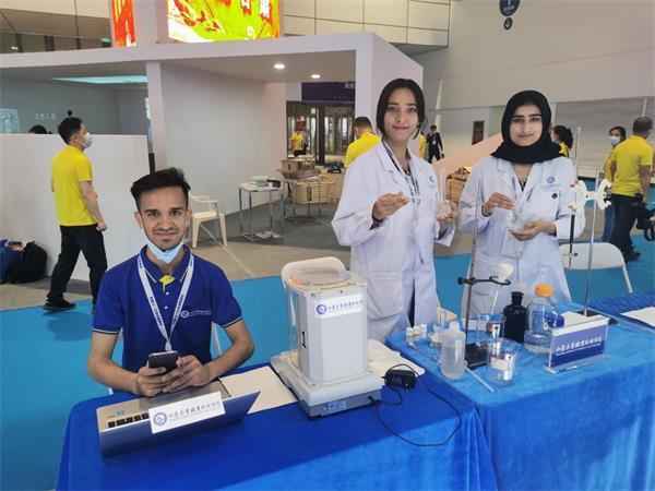 3名來自巴基斯坦的留學生分別用漢語講解并展示了使用直接碘量法(滴定分析法)對維生素C片的含量進行測定、跨境電商平臺運營分析的選品和采購。學生們的優異表現得到各級領導的充分肯定。