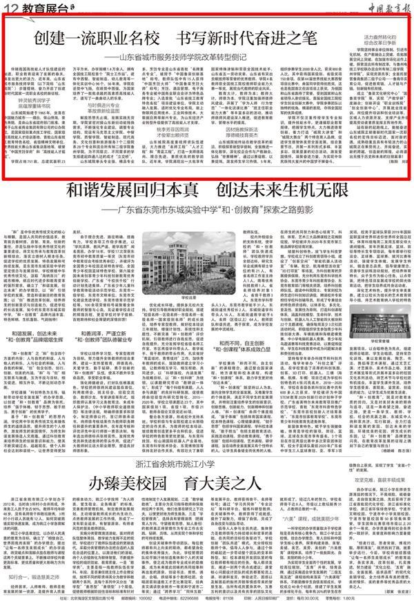5月6日,《中國教育報》“教育展臺”版塊以《奮力創建國家一流職業名校 書寫新時代職業教育奮進之筆——山東省城市服務技師學院改革轉型側記》為題,詳細報道了省城市學院近年來改革發展取得的新成就。