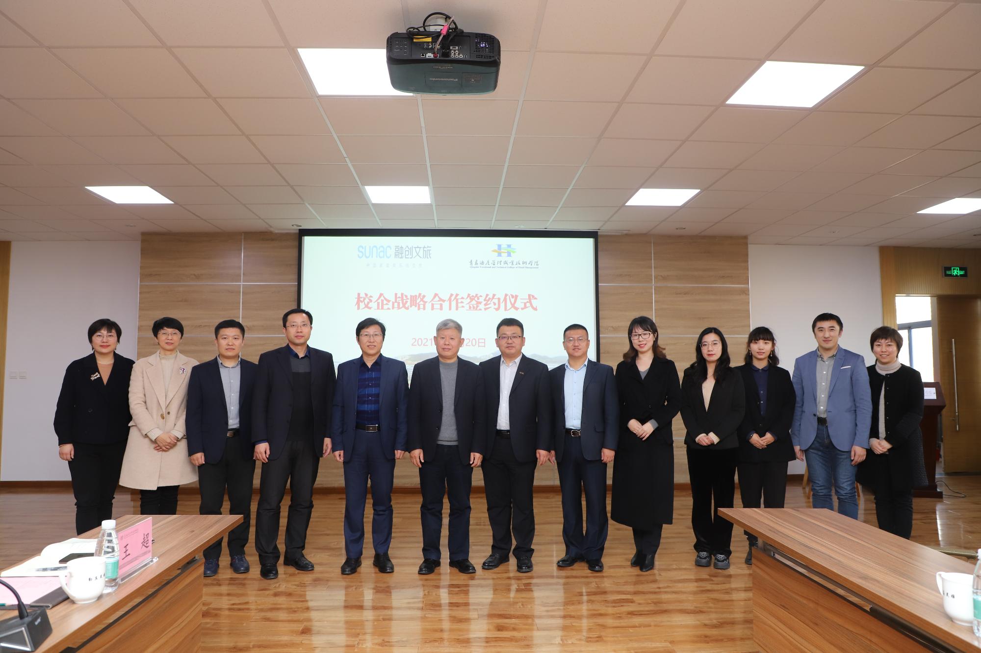雙方簽署校企戰(zhàn)略合作協(xié)議,并為產(chǎn)學(xué)研戰(zhàn)略合作基地、“雙師型”教師培養(yǎng)培訓(xùn)基地、“青島融創(chuàng)文旅現(xiàn)代學(xué)徒制班”揭牌。