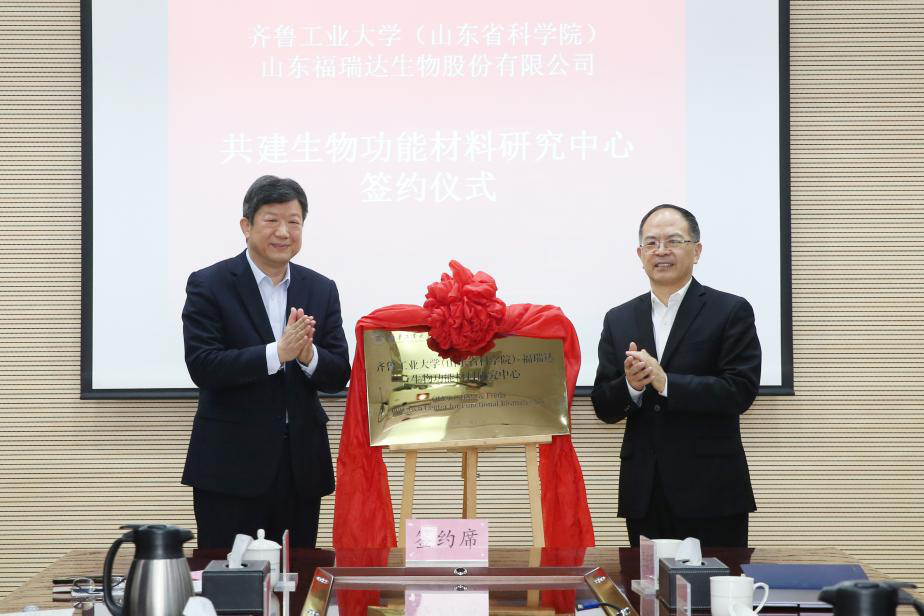 1月5日,福瑞達旗下福瑞達生物與齊魯工業大學(山東省科學院)舉行共建“生物功能材料研究中心”簽約儀式。齊魯工業大學黨委副書記劉永波、生物工程學部黨委書記張召寧、生物基材料與綠色造紙國家重點實驗室副主任王瑞明,福瑞達黨委書記、董事長賈慶文,副總經理、福瑞達生物總經理高春明出席簽約儀式。