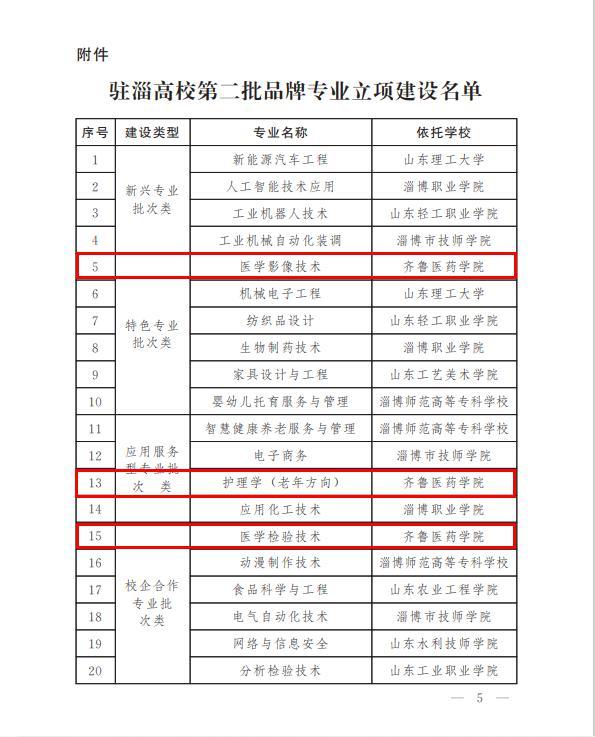 近日,淄博市教育局公布駐淄高校第二批品牌專業立項建設名單,齊魯醫藥學院3個專業獲批立項。醫學影像技術專業獲批“特色專業”、護理學(老年方向)專業獲批“應用服務型專業”、醫學檢驗技術專業獲批“校企合作專業”,共獲得市財政經費支持350萬元。