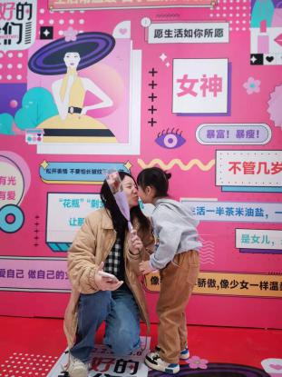 濟(jì)南華信店在商場(chǎng)內(nèi)設(shè)置網(wǎng)紅拍照墻,顧客通過(guò)參與打卡活動(dòng)找到自己的專屬標(biāo)簽,收獲“最美的自我”。