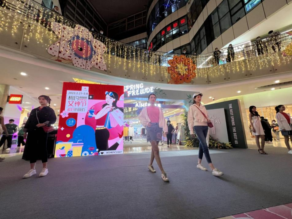 濟(jì)南和諧廣場(chǎng)店聯(lián)合多個(gè)知名品牌推出“花漾服裝節(jié)”活動(dòng)。時(shí)尚走秀環(huán)節(jié)吸引了大量顧客駐足圍觀,不僅展示了商品之美,更彰顯了新時(shí)代女性時(shí)尚、優(yōu)雅、自信的健康形象。