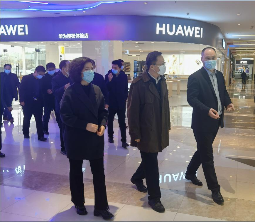 3月17日,菏澤市副市長張鵬到銀座集團菏澤和諧廣場店督導抗疫保供工作,菏澤市商務局局長尹慧萍陪同。