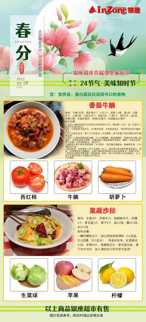 想想看,當(dāng)你在清明、谷雨、小滿等節(jié)氣漫步在家門口的銀座超市,會(huì)驚喜地發(fā)現(xiàn)堆得高高的節(jié)氣食材商品,可以比照養(yǎng)生食譜一站購齊所需的時(shí)令食材——香椿炒蛋、薺菜水餃、油燜春筍、蓮藕排骨……將剛從田間地頭新鮮采摘的時(shí)令食材擺到自家的餐桌上,美味又養(yǎng)生,是不是頓覺幸福感爆棚?