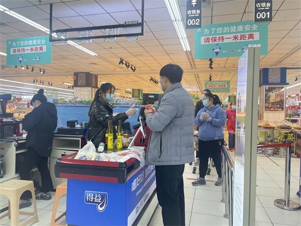 門店嚴格執行全方位、全流程消殺工作,堅決不留一個死角,門店入口處放置免洗消毒凝膠、酒精、一次性手套、口罩等防護物資,并在冷鏈商品等陳列區域為顧客配備消毒用品及一次性挑選商品的手套;增加防疫監測人員,專人負責測溫、驗碼工作;進一步細化人員排查與管理工作方案,并做好臺賬記錄,堅持不懈筑牢織密疫情防控堅固防線。