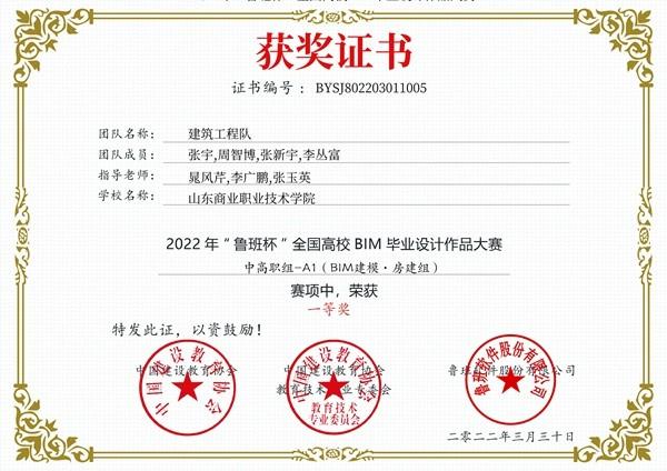 近日,2022年“魯班杯”全國高校BIM畢業(yè)設(shè)計(jì)作品大賽A賽項(xiàng)(BIM建模)獲獎(jiǎng)結(jié)果公布,山東商院2支參賽團(tuán)隊(duì)在全國350余所院校950余支參賽隊(duì)伍中脫穎而出,分別榮獲一、二等獎(jiǎng)。學(xué)院依托BIM技術(shù)研究中心,嚴(yán)格選拔指導(dǎo)教師及參賽學(xué)生,充分利用課余時(shí)間進(jìn)一步學(xué)習(xí)BIM技術(shù),通過兩個(gè)多月的緊張備賽,2支參賽隊(duì)圓滿完成了A賽項(xiàng)建模任務(wù),喜獲佳績。