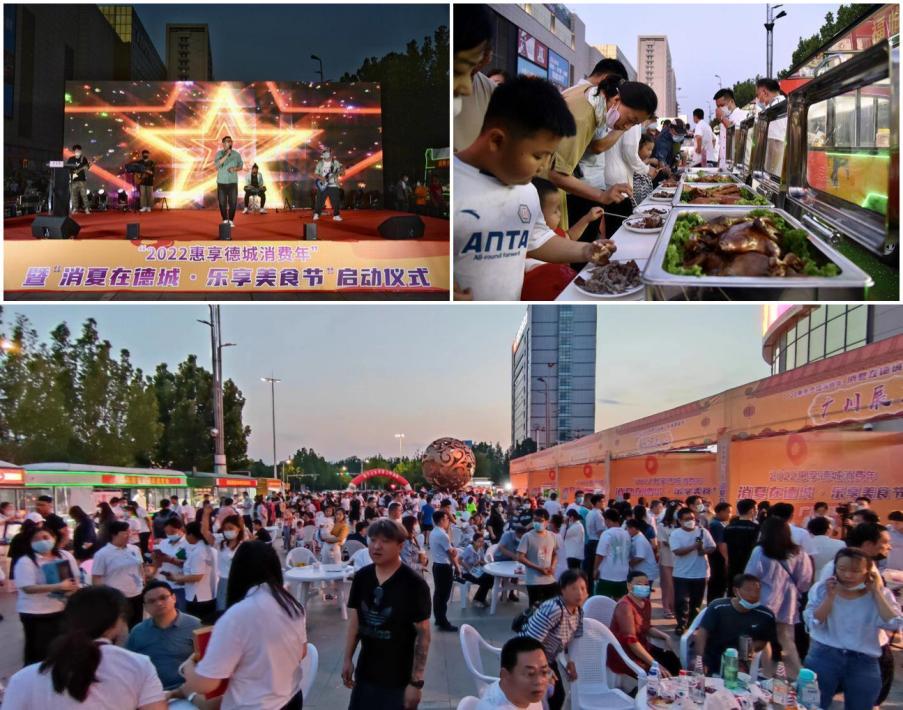 活動現場設7個鎮街展區、特色小吃區、啤酒美食文化區、德州老字號區、非遺展示區、電商直播區、親子娛樂游玩區以及教培展示區等主題區域,首場消夏音樂節同步啟動,美食、時尚、文化、藝術完美結合,為廣大市民奉上一場別開生面的“萬味生活”饗宴。活動現場還發放615張滿100減20元政府消費券。線上借助抖音等第三方平臺及網紅探店等方式全程線上直播,吸引10萬人次在線同步觀看。