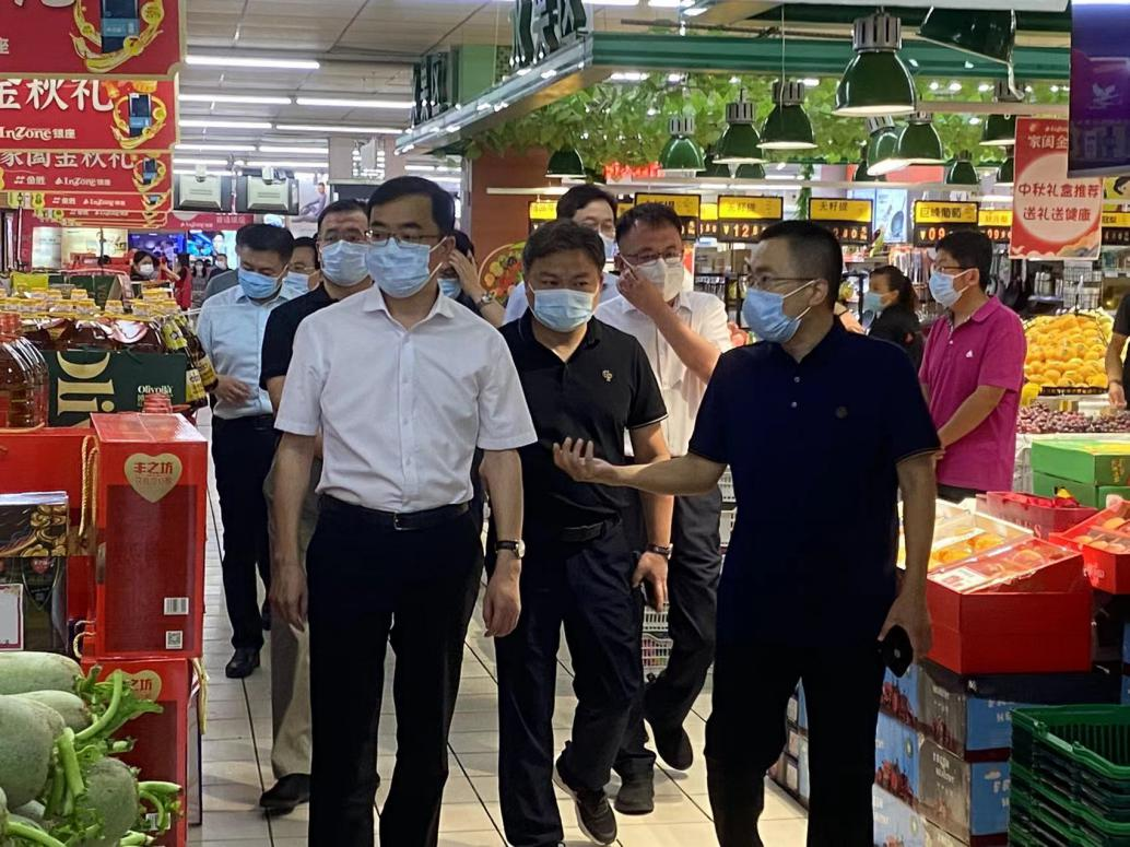 劉祥龍聽取了門店疫情防控及節(jié)日市場供應(yīng)情況的匯報(bào),現(xiàn)場查看了掃碼驗(yàn)碼、佩戴口罩、體溫檢測等疫情防控措施落實(shí)情況,詳細(xì)詢問蔬菜、肉類、水果等產(chǎn)品價(jià)格,了解客流量、進(jìn)貨渠道和基礎(chǔ)生活物資保供穩(wěn)價(jià)情況。他強(qiáng)調(diào),商超是人員密集場所,必須嚴(yán)格落實(shí)商場準(zhǔn)入三碼核驗(yàn)、戴口罩、量體溫等程序;同時(shí)要確保節(jié)日商品供應(yīng)充足,確保節(jié)日市場價(jià)格平穩(wěn)、供應(yīng)有序。