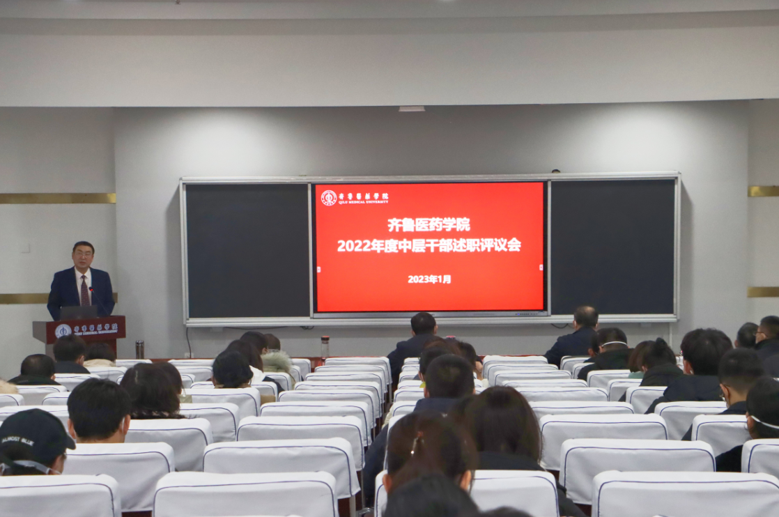 1月11日,齊魯醫藥學院召開2022年度中層干部述職評議會,院長韓冰主持會議并講話。