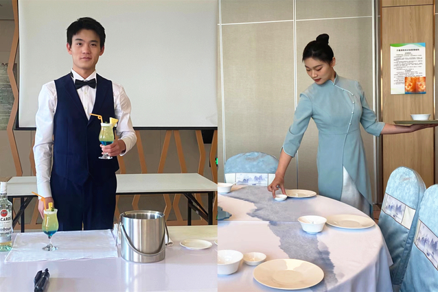 本次比賽由省教育廳、省工信廳、省人社廳、省農業農村廳等四部門主辦,共有來自全省高職院校的27個參賽隊參加。大賽著眼于考核學生在餐飲管理與服務工作中的綜合素質和能力,分為中餐服務和西餐服務兩大項目,包括休閑餐廳服務、雞尾酒調制、中餐主題宴會設計和宴會服務4個模塊。其中,休閑餐廳服務和雞尾酒調制兩個模塊全程使用英語服務,整個比賽內容既體現中國特色,又接近世賽標準,考核內容多、難度大,專業要求高。