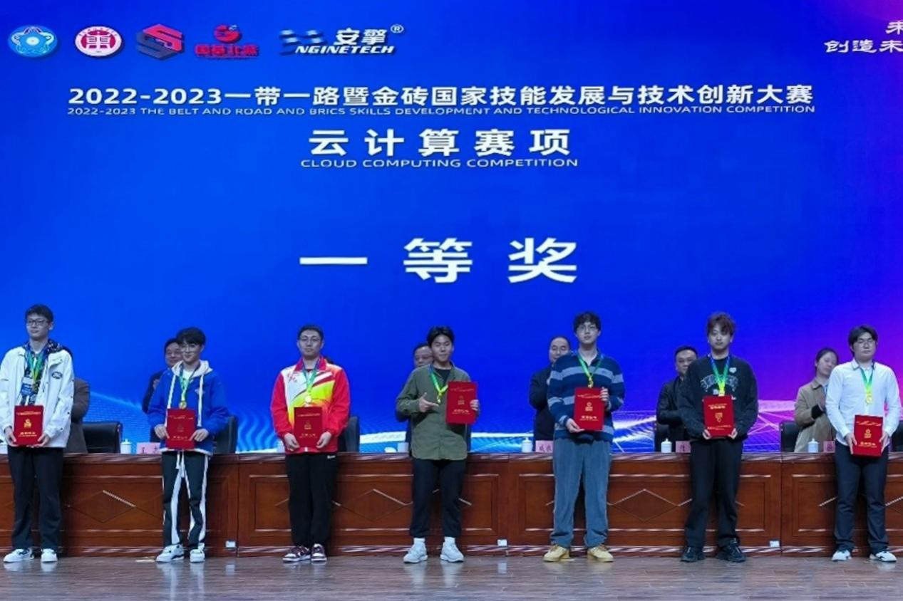3月30日至31日,2022-2023“一帶一路”暨金磚國家技能發(fā)展與技術(shù)創(chuàng)新大賽云計(jì)算賽項(xiàng)決賽舉行。經(jīng)過激烈角逐,山東商院學(xué)生孫繼蕾在教師國海濤、董娜的指導(dǎo)下從全國71所院校的136支隊(duì)伍中脫穎而出,斬獲決賽一等獎及金牌,山東商院榮獲最佳組織獎。
