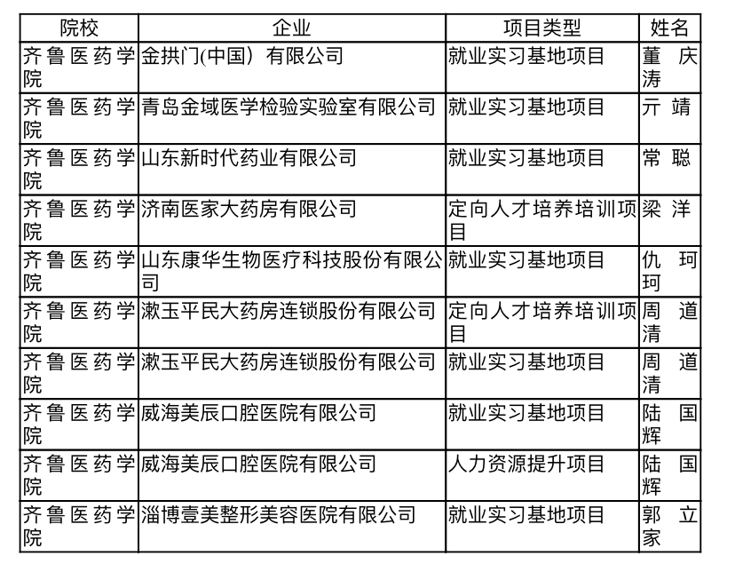 4月6日,教育部公布第二期供需對接就業育人項目立項名單,齊魯醫藥學院10個項目獲批立項。