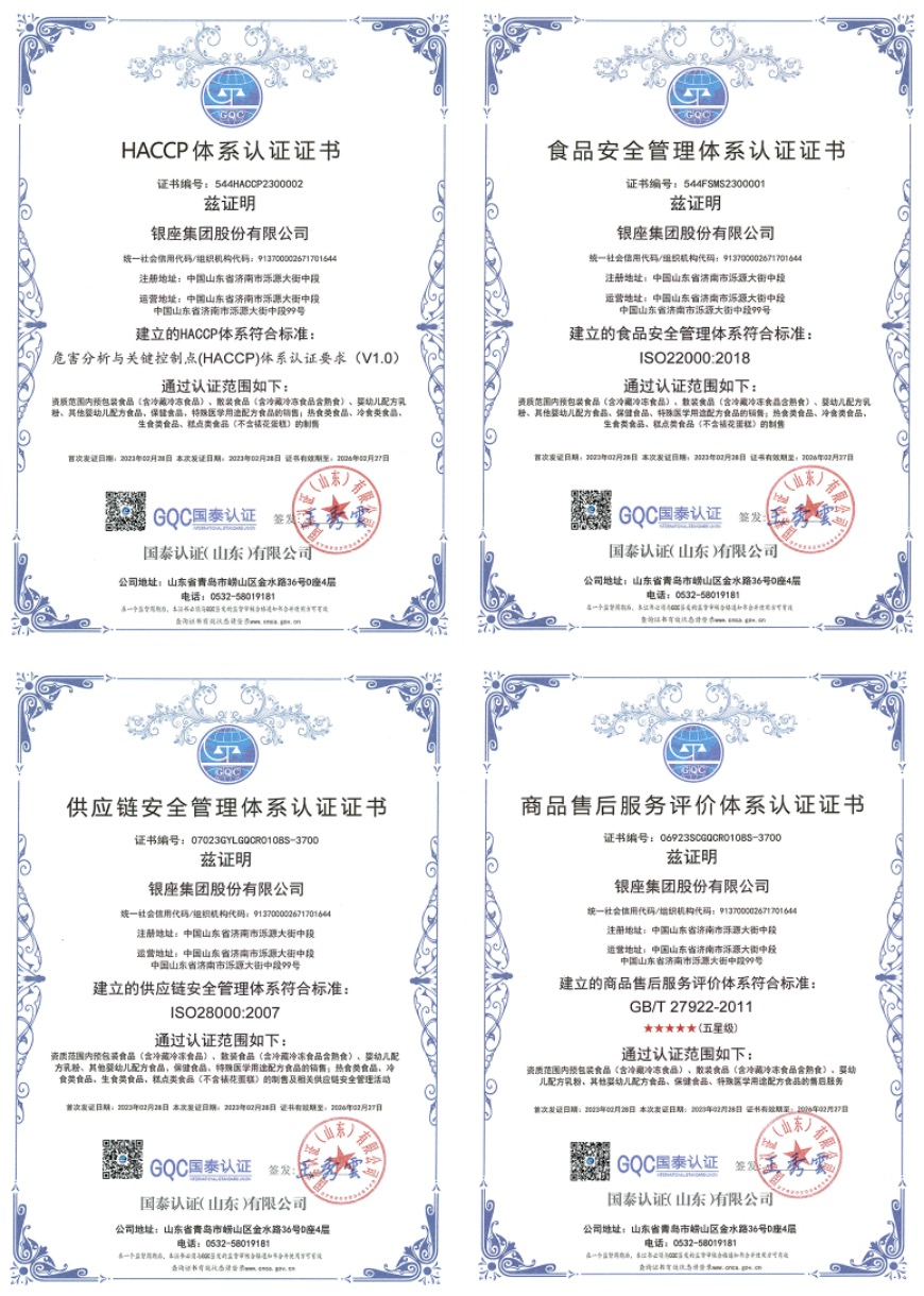 近日,銀座集團(tuán)順利通過ISO22000食品安全管理體系、HACCP體系、ISO28000供應(yīng)鏈安全管理體系、GB/T 27922商品售后服務(wù)評價管理體系認(rèn)證。
