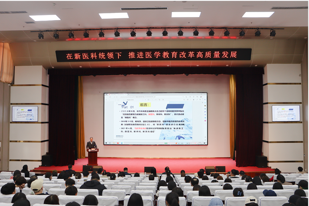 4月10日,齊魯醫(yī)藥學(xué)院邀請(qǐng)全國(guó)醫(yī)學(xué)教育發(fā)展中心特聘專家、中國(guó)醫(yī)科大學(xué)教授孫寶志作《在新醫(yī)科統(tǒng)領(lǐng)下推進(jìn)醫(yī)學(xué)教育改革高質(zhì)量發(fā)展》專題講座。學(xué)院院長(zhǎng)韓冰主持,副院長(zhǎng)耿磊、顧問(wèn)張培功及各二級(jí)學(xué)院(部)負(fù)責(zé)人、教師代表參加。