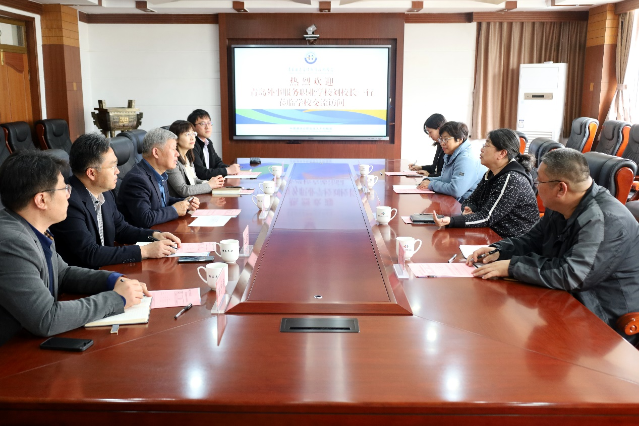 劉宇虹介紹青島外事服務職業學校發展建設情況和此次考察交流的目的,并就專業建設、教學及科研、招生就業等工作進行分享交流。