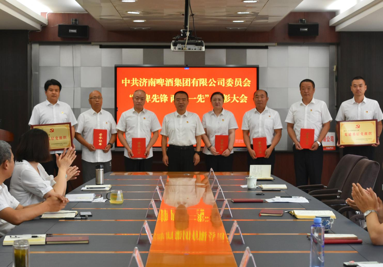 會議宣讀公司黨委關于表彰“濟啤先鋒 兩優一先”的決定,并對優秀共產黨員、優秀黨務工作者、先進基層黨組織獲獎代表進行現場表彰。公司各部室、各單位匯報上半年工作完成情況,查找問題和不足,深刻剖析原因,提出下一步工作措施。