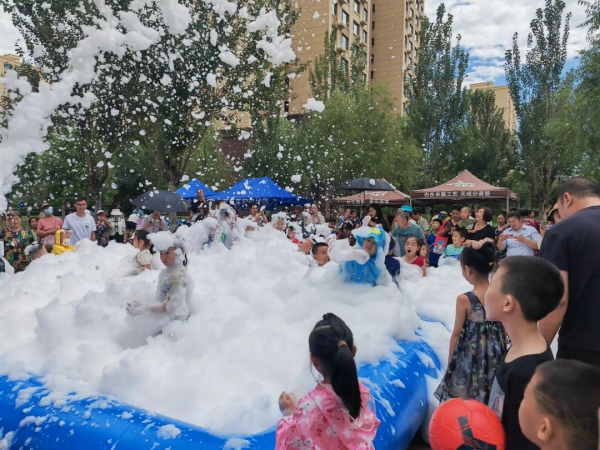 暑期期間,魯商服務各項目推出“泡泡派對”“水槍派對”等活動,組織業主家長帶著孩子們一起通過游戲消夏避暑,享受親子時光。