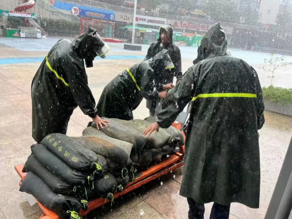 魯商服務全體員工堅守一線,共同迎戰臺風“杜蘇芮”“卡努”。臺風來臨前,魯商服務員工對車庫、廣告牌、排水系統、供電系統進行巡查排查,疏通排水管道,為廣大業主筑牢生命財產安全防線。