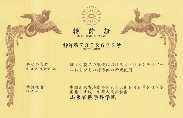 羥基酪醇是橄欖中所含的一種多酚,具有優(yōu)異的抗炎和抗氧化作用,省藥科院于2018年開始探索研究并確認(rèn)了其在抗抑郁癥治療中的作用,于2020年在國內(nèi)獲得發(fā)明專利授權(quán),2021年4月開始申請日本專利并于今年獲得授權(quán)。