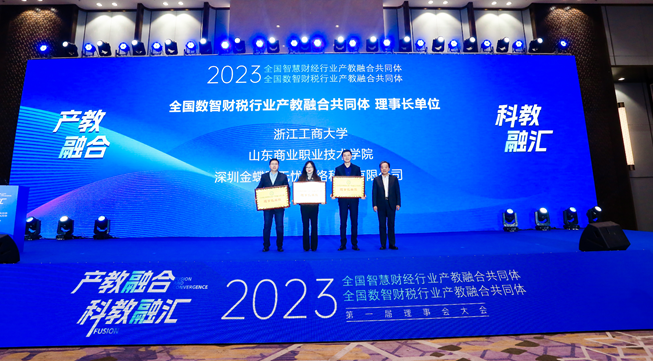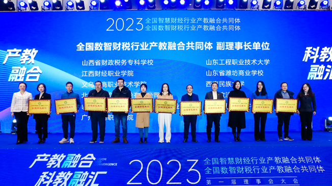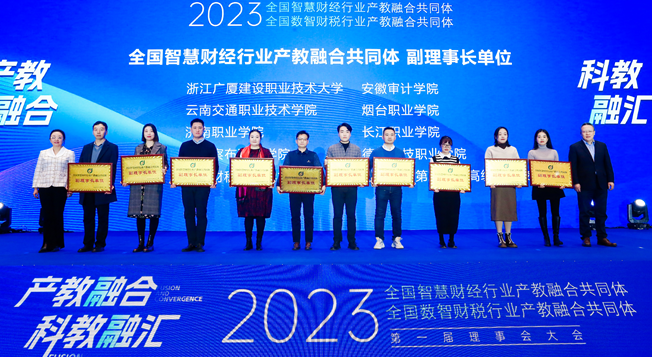 大會(huì)通過(guò)了兩個(gè)共同體章程和第一屆理事會(huì)名單。啟動(dòng)儀式上,與會(huì)領(lǐng)導(dǎo)為全國(guó)智慧財(cái)經(jīng)行業(yè)產(chǎn)教融合共同體和全國(guó)數(shù)智財(cái)稅行業(yè)產(chǎn)教融合共同體的理事長(zhǎng)單位、副理事長(zhǎng)單位、常務(wù)理事單位授牌。