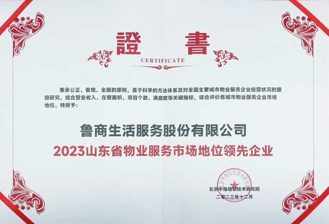 “山東省物業服務市場地位領先企業”榜單公布 魯商服務位列第三