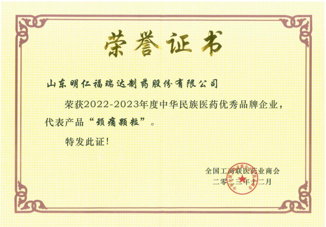 明仁福瑞達本次上榜代表產品頸痛顆粒是治療神經根型頸椎病的系列中成藥,具有活血化瘀、行氣止痛之功效。近年來,明仁福瑞達利用山東省骨科疼痛類藥物工程研究中心等科研平臺優勢,持續對頸痛顆粒進行創新和質量提升,被成功列為國家重點新產品,入選山東省火炬計劃,獲山東省制造業單項冠軍產品等多項榮譽。