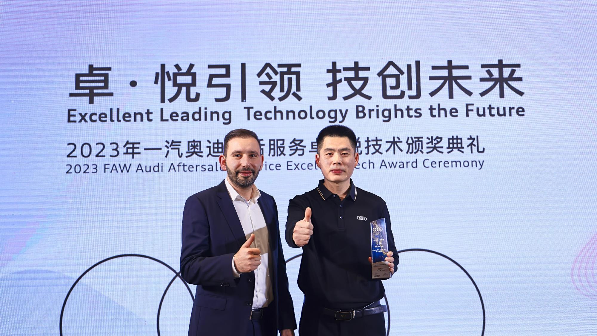 近日,一汽奧迪售后服務(wù)卓悅技術(shù)頒獎典禮圓滿落幕。山東銀座天尊汽車有限公司(以下簡稱銀座天尊)技術(shù)經(jīng)理趙福山及團隊憑借專業(yè)的技術(shù)知識和強勁實力斬獲2023年一汽奧迪“十強”優(yōu)秀技術(shù)經(jīng)理、奧迪專業(yè)雙杯競賽技術(shù)杯第一名、奧迪維修技術(shù)平臺優(yōu)秀案例一等獎等殊榮,他們以精準高效、專業(yè)務(wù)實的技術(shù)能力,更好支撐售后技術(shù)服務(wù)業(yè)務(wù),銀座天尊被授予山東省唯一一家“一汽奧迪售后服務(wù)技術(shù)中心站”。