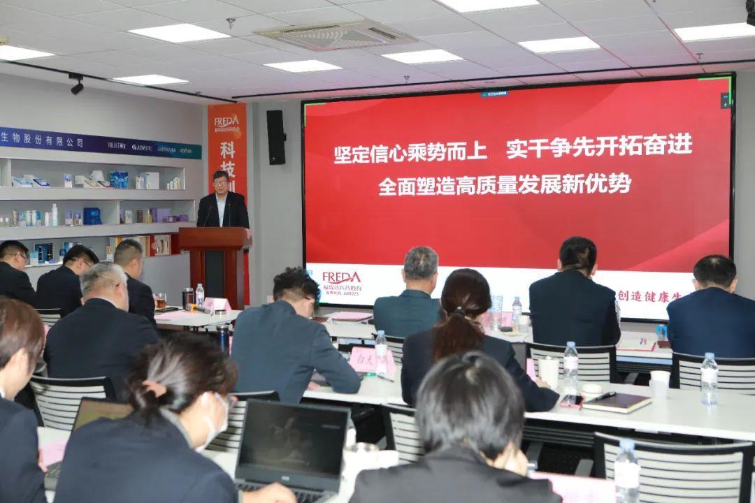 賈慶文作題為《堅定信心乘勢而上 實干爭先開拓奮進 全面塑造高質量發展新優勢》的講話。他指出,2024年福瑞達將認真貫徹魯商集團“12345”高質量發展戰略,強化“五個堅持”,落實“五個聚焦、五個確?!保钥萍紕撔铝?、產業生態力、管理運營力、品牌影響力、組織文化力,持續壯大規模實力。一是強化科技創新力,培育新質生產力。加大研發投入,推進研發一體化規劃,發揮學術專家委員會作用,堅持以市場為導向,以科技創新推動產業創新。二是做大做強核心主業,打造產業生態力。優化協同機制,著力推進四個“一體化”。醫藥板塊加快品牌中藥、中藥大品種培育。化妝品板塊聚焦資源,持續推進大單品策略。原料板塊向綠色生產、高品質制備和衍生產品轉型。三是專業驅動、數智升級、強化管控,增強管理運營力。加強品質管理,提升智能制造水平,落實降本增效,加強風險防控,做好安全管理。四是發揮行業領軍作用,塑造品牌影響力。培養全球視野,積極開展國際業務。在行業論壇發聲,全面啟動ESG品牌傳播,以科學與文化營銷展現科技自信、“國潮”魅力。五是黨建引領、深化改革,提升組織文化力。將黨建融入生產經營,用黨建保障工作落實。扎實開展新一輪國企改革深化提升行動,提升組織效能。